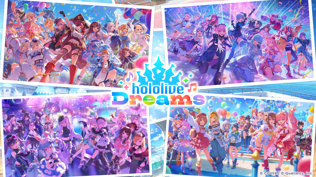 Desenvolvido pela QualiArts em parceria com a COVER Corporation, hololive Dreams, também conhecido como holodori, é um RPG de ritmo que conta com mais de 50 VTubers da hololive. O cenário do jogo é um parque de diversões em uma ilha remota, onde os jogadores colaboram com os membros da hololive para construir instalações e desenvolver o mágico Dream Park.