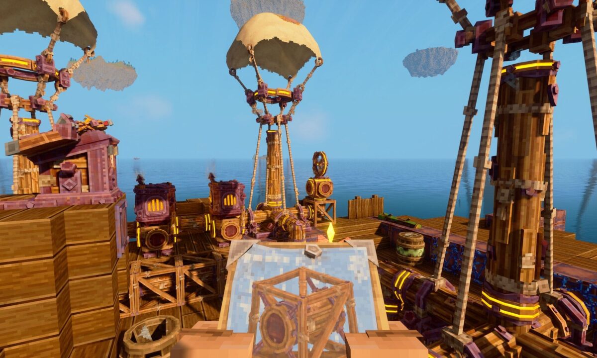 Ao encontrar uma nave abandonada, coloque o Cockpit no leme e conecte o Gerador de Energia, o Motor de Madeira e o Balaão. Carregue combustível como toras de madeira e inicie o motor para ganhar potência e finalmente decolar.